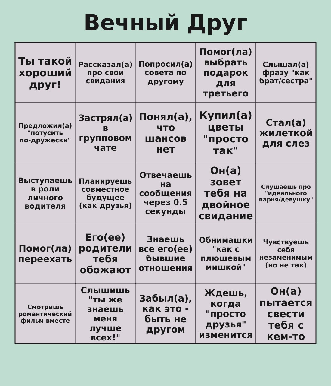 Получите красивое изображение карты бинго. Делитесь с друзьями и начинайте играть!